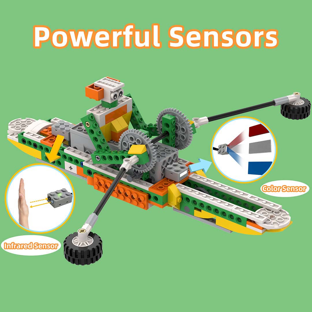 Incluye múltiples sensores para detección de distancia, evitación de obstáculos, identificación de colores y otros proyectos STEM divertidos con efectos LED.
