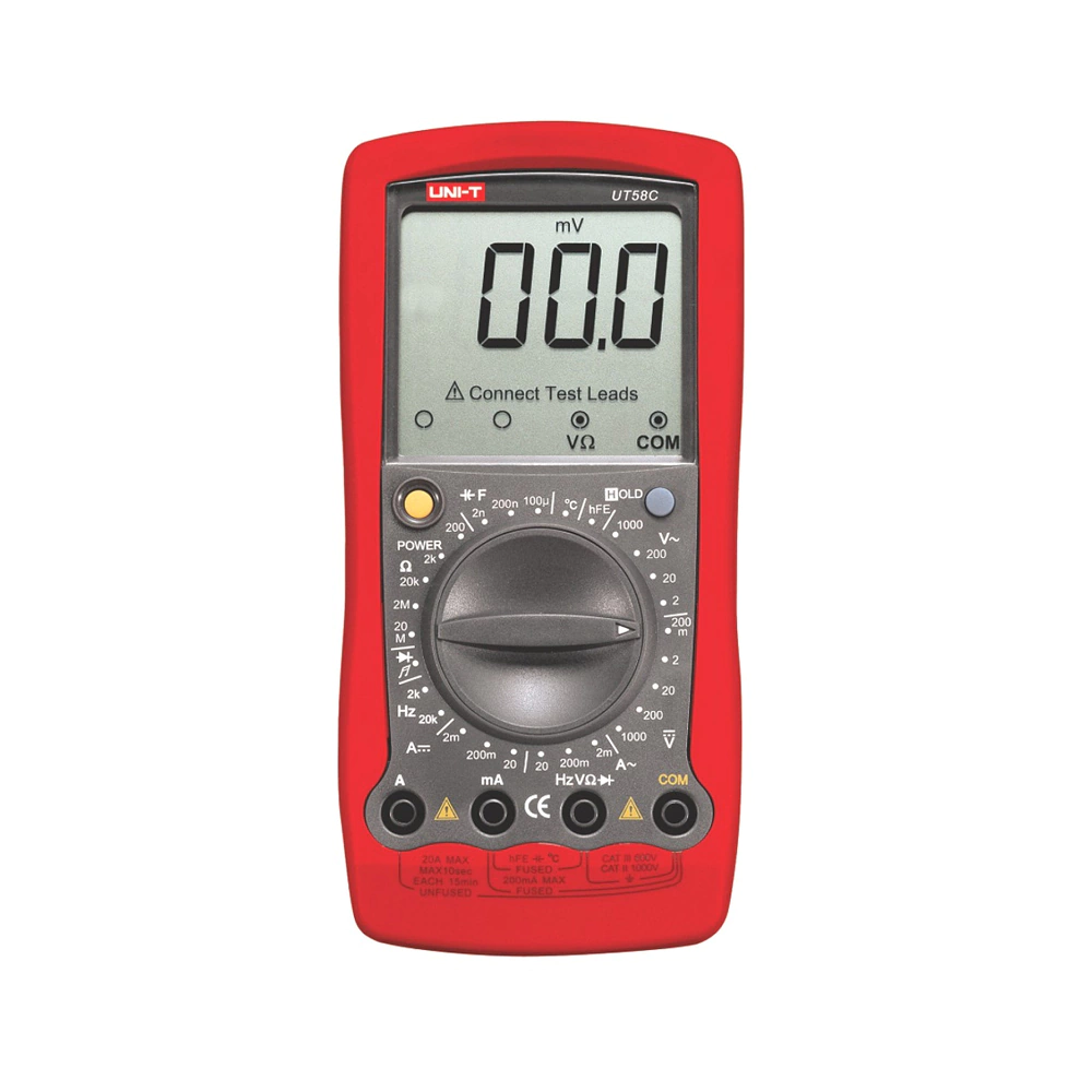 Tensión máxima CC: 1000V Tensión máxima CA: 750V Corriente máxima CA / CC: 20A Resistencia máxima: 20 MΩ Capacitnacia: 100uF Frecuencia minima: 2 kHz Frecuencia máxima: 20kHz Temperatura máxima: 1000°C Temperatura mínima: -40°C Test de continuidad |